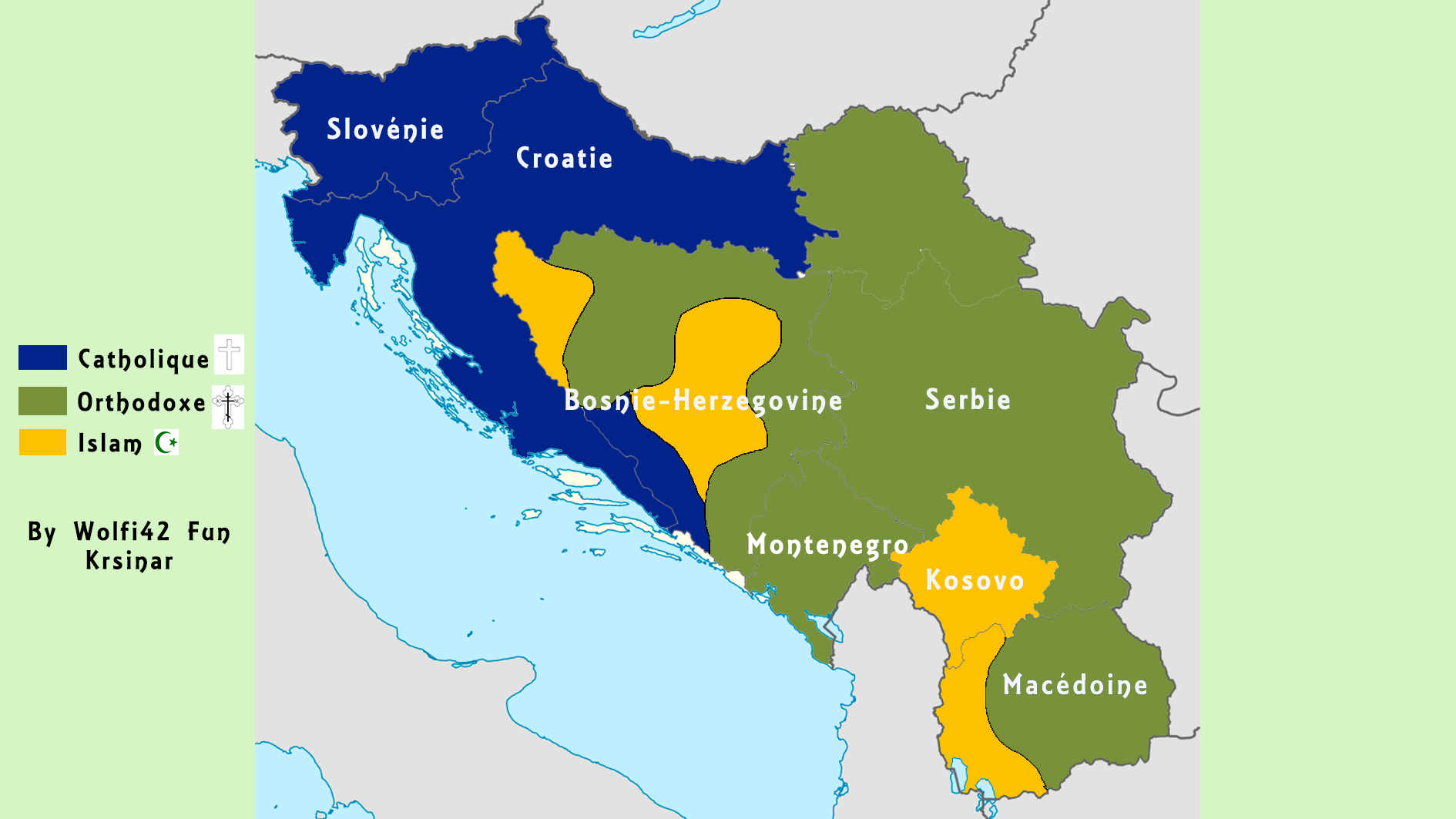La Yougoslavie est un pays constitué de plusieurs religions, catholiques, musulmans et orthodoxes y sont majoritèrent au dépend des juifs et protestants.