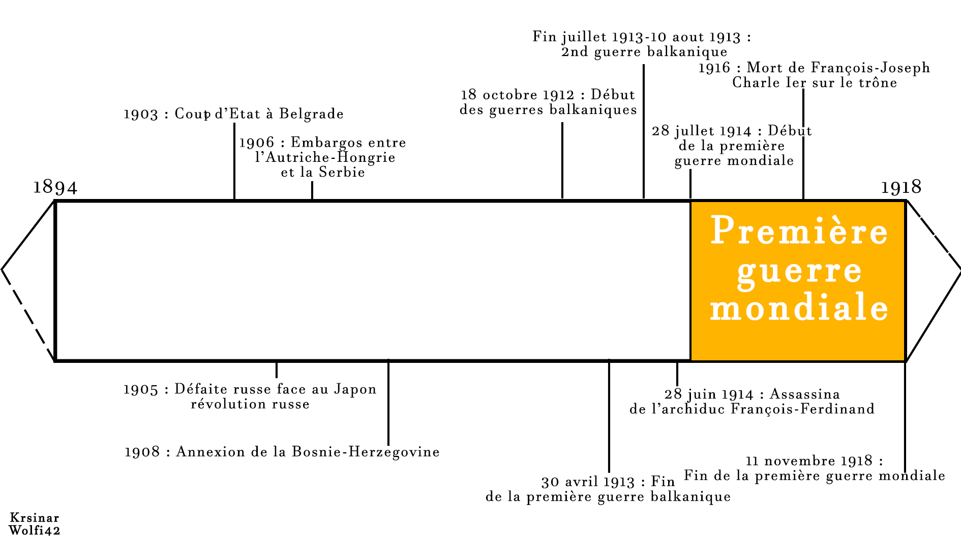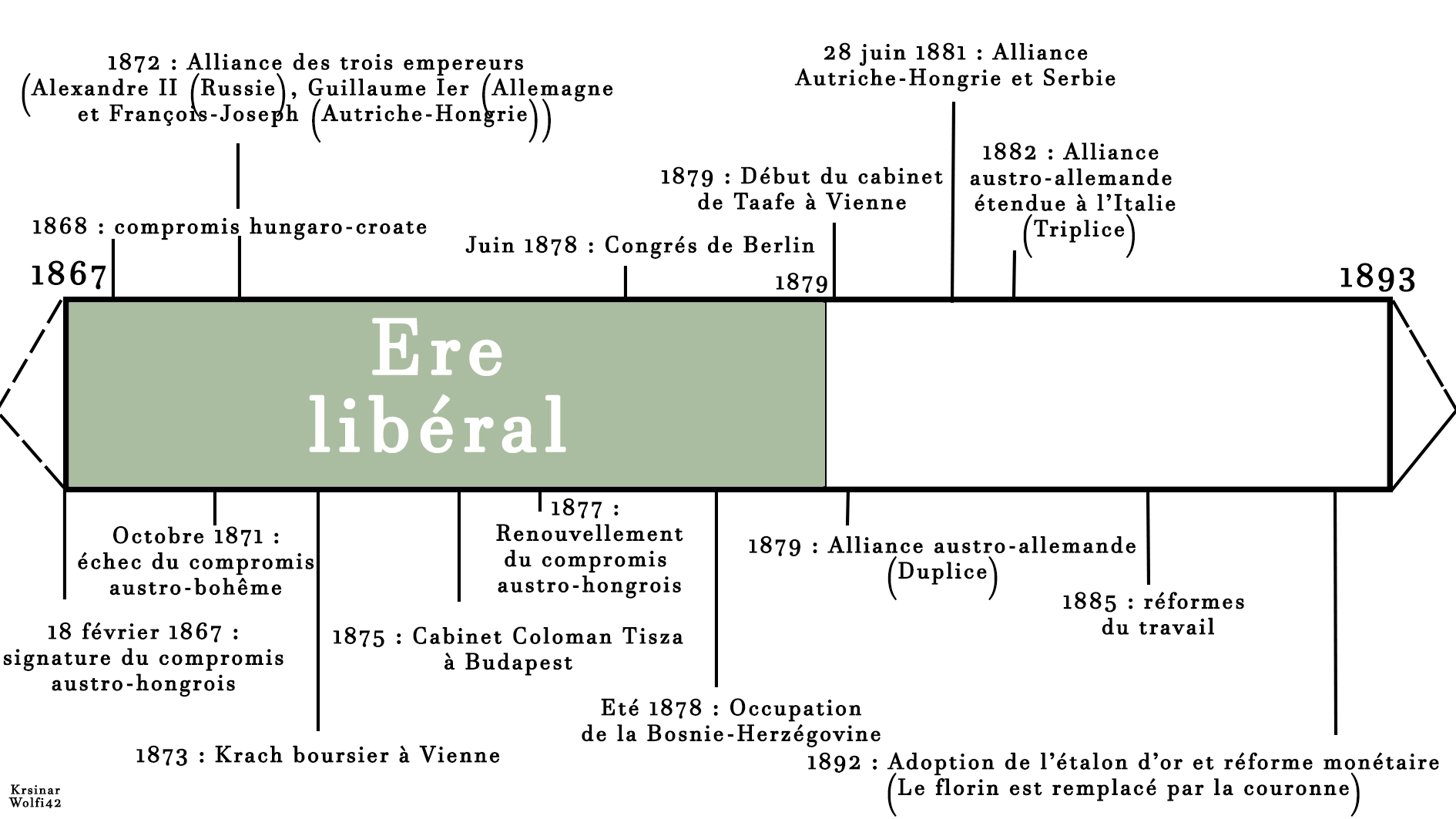 Frises chronologiques reprenants toutes les dates clés et périodes ayant impactés l'empire d'Autriche-Hongrie :